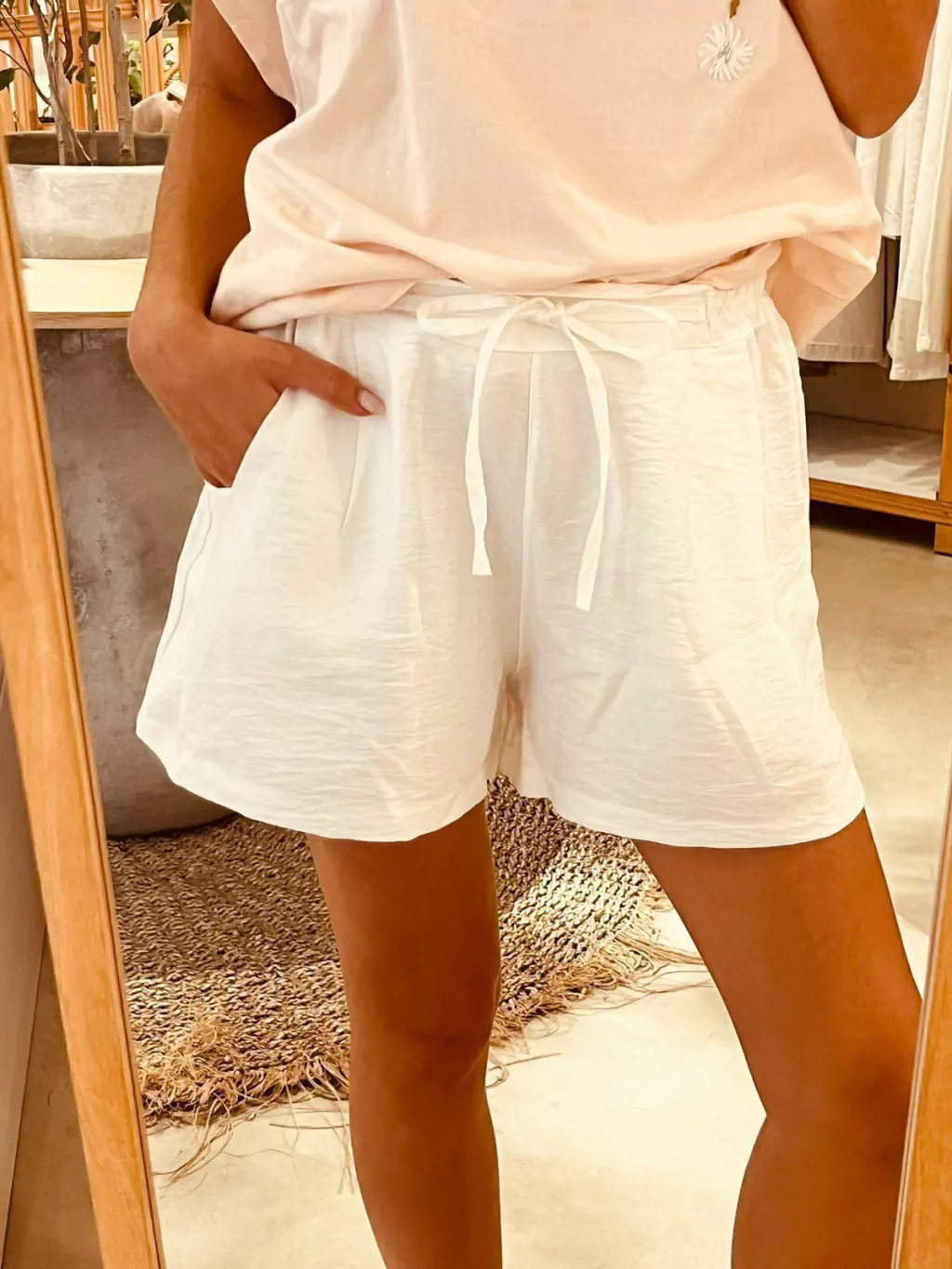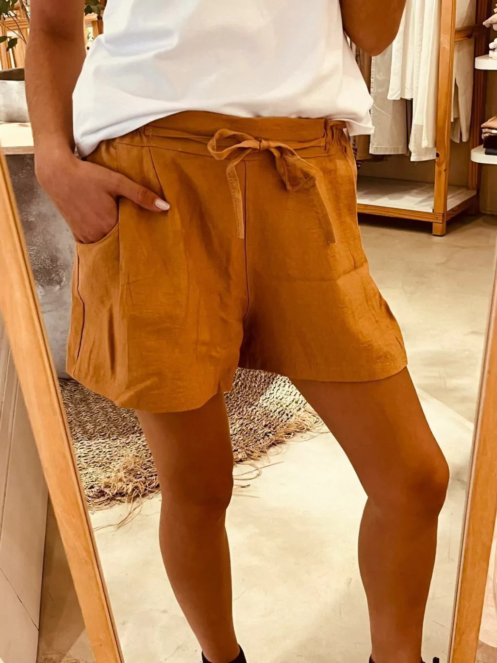 Short de lino con elástico en la cintura y tirita fina para atar.