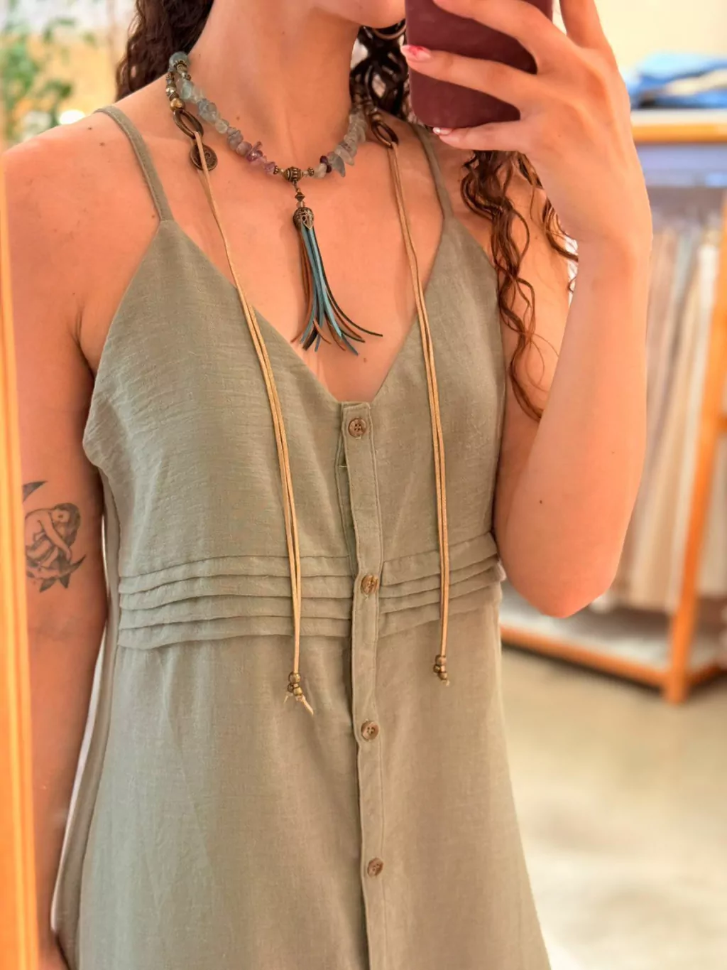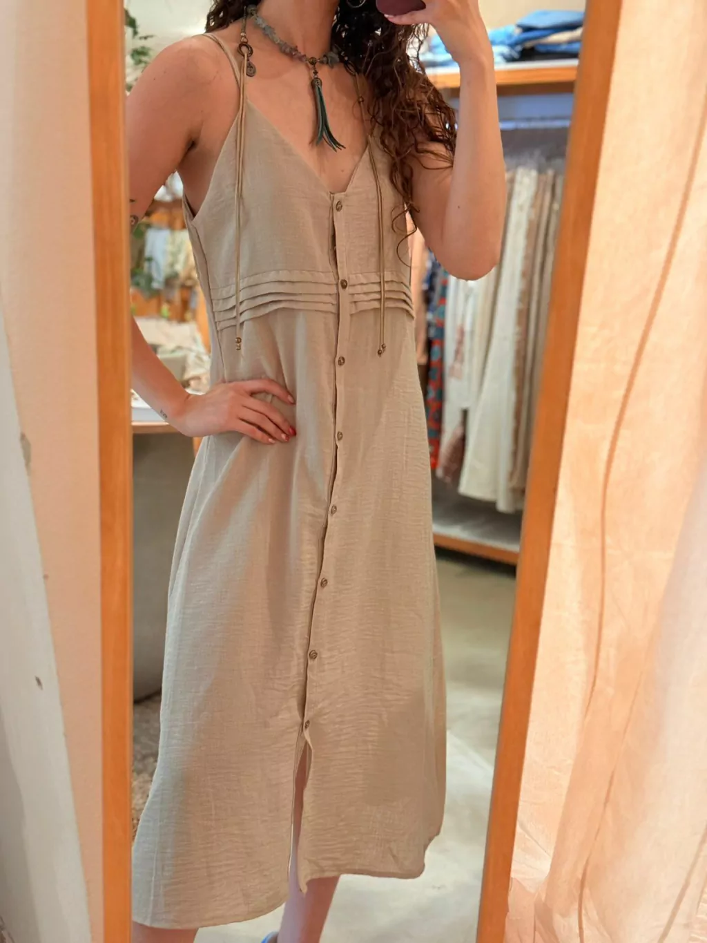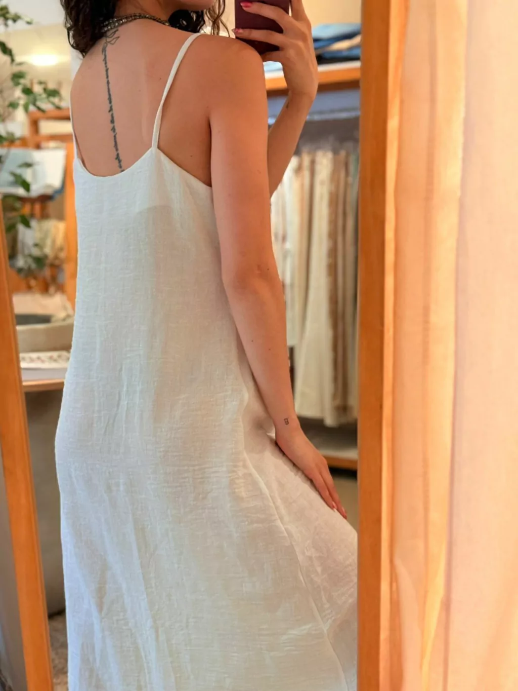 Vestido largo liso, en varios colores, tableado abajo del busto.