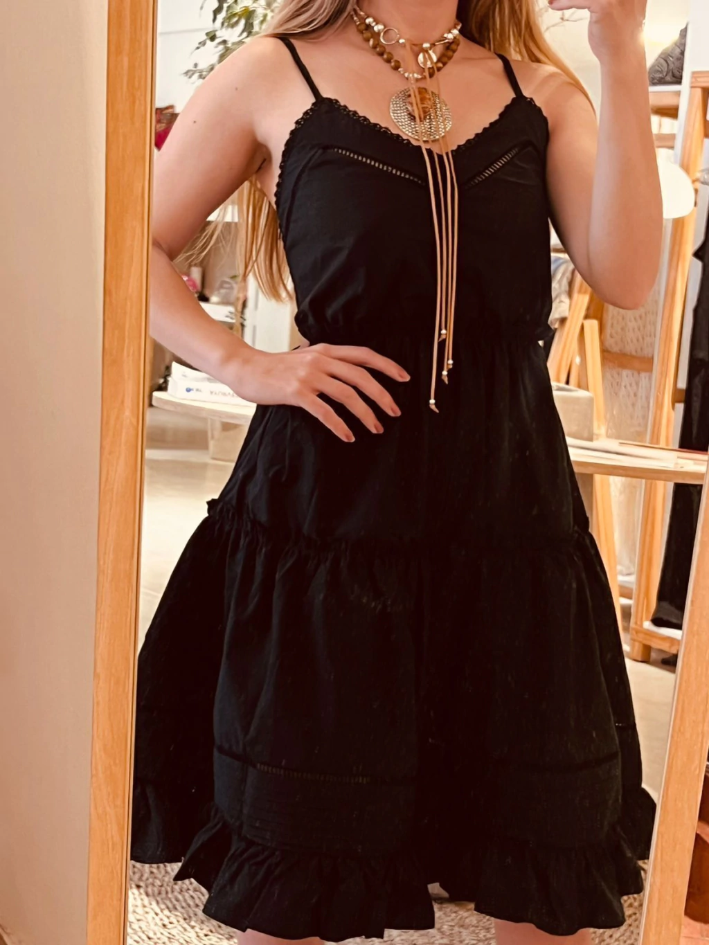 Vestido corto con tiritas regulables y elástico en la espalda (cede bastante)